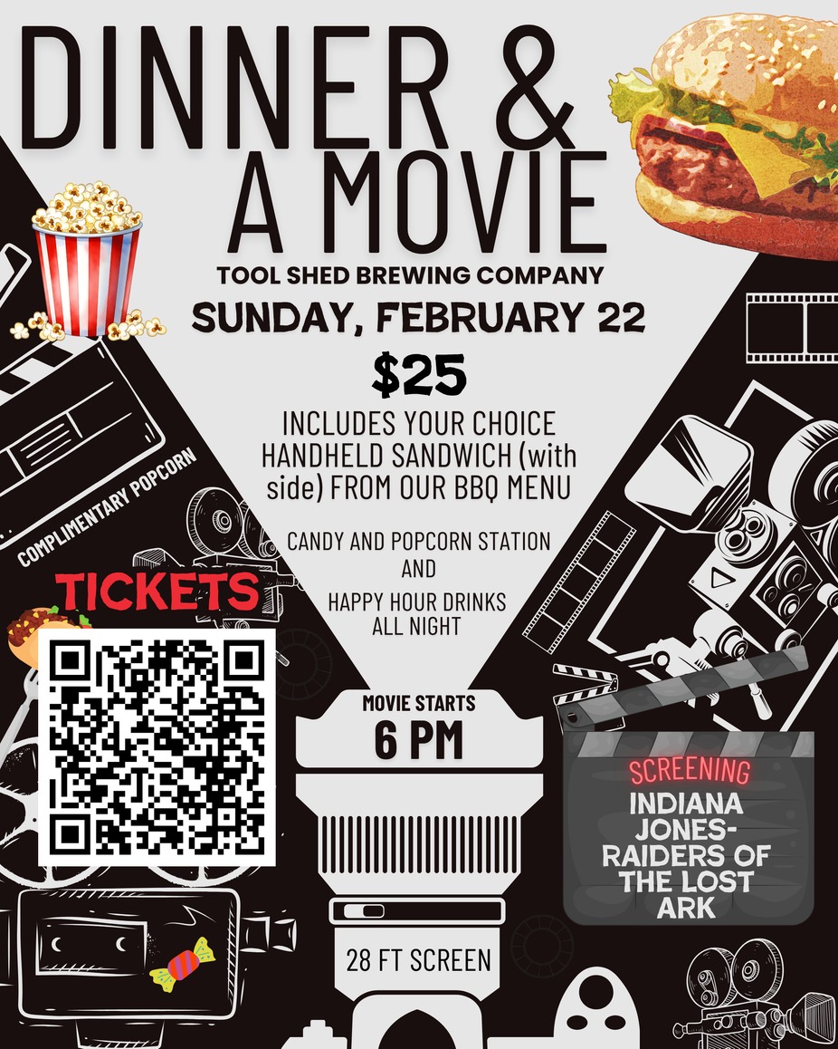 ✨ Movie starts at 6:00 PM 📍 Tool Shed Brewing Company 🎟 Limited tickets available, grab yours before they’re gone!