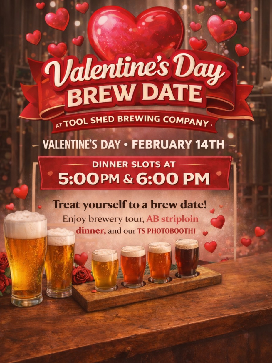 Love, fire, and a very serious steak. 💘🔥Treat Yourself this Valentine’s Day with a live-fire dinner featuring Alberta NY Striploin, Backyard Stuffed Potatoes, Flat Cap Stout Mushrooms, and Charred Seasonal Vegetables, finished with a decadent Chocolate Brownie. Your ticket also includes a Brewery Tour and access to the Tool Shed Photobooth, because great love stories deserve photo evidence.
